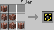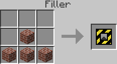 The Filler is a machine added in version 1.4.7 to fill whole areas with blocks. It needs to be placed in front of a landmark to fill the area the landmarks are describing. (See the landmark page for how to use landmarks). It needs to be powered by a stirling engine or above. Fillers consume power (up to 100MJ/t in increments of 25MJ/block) whether they are activated or not.