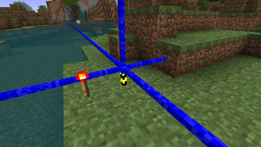 Aside from defining the operational area for machines, landmarks can be useful for marking reference lines within the world for when you are building a structure by hand or trying to connect a tunnel to an exact location. Likewise, the blue beam that rises from the top of a redstone-powered landmark can be seen from a great distance, marking important locations that otherwise might be difficult to find again.